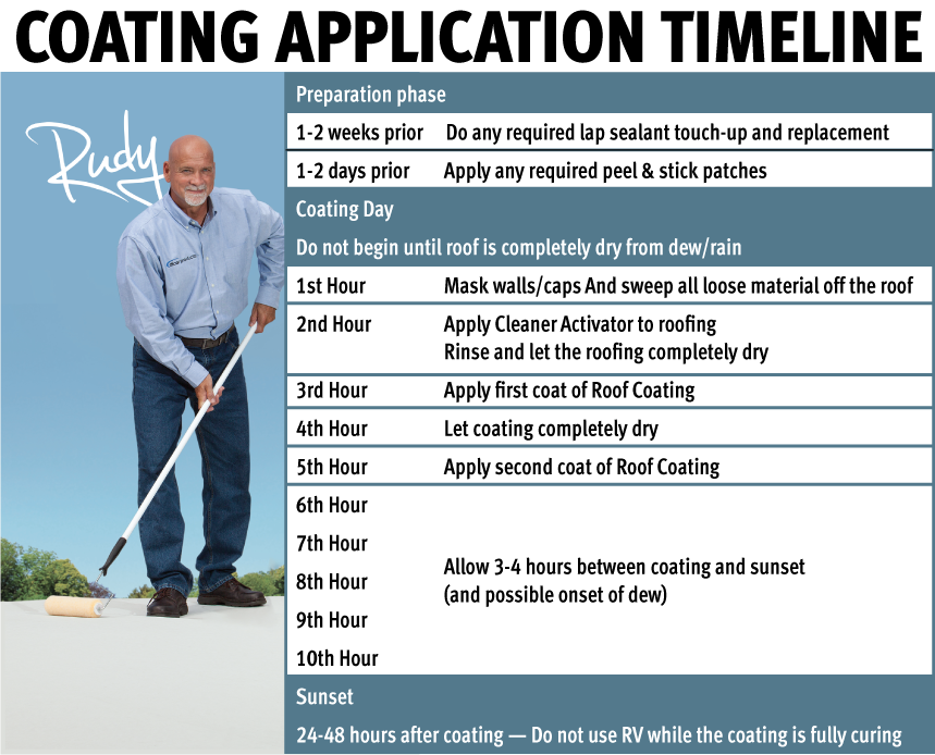 • 1-2 weeks prior to coating, reseal all fasteners and around all roof protrusions and vent mountings with Dicor’s 501 Lap Sealant, if necessary.