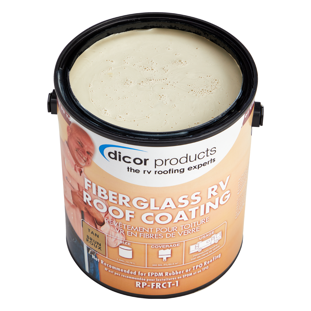 Dicor Fiberglass RV Roof Coating protects and beautifies fiberglass and previously coated RV roofs. Fiberglass RV Roof Coating is formulated with 100% Acrylic Fiberglass resins to form a flexible coating that will expand and contract with the roof movement. Dicor Fiberglass RV Coating is brilliant white to provide a superior reflectivity thereby lowering interior temperatures.